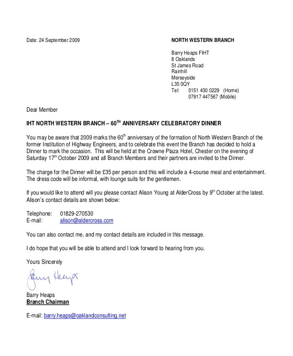 15 formal invitation letters from Invitation Letter Dinner Party Example