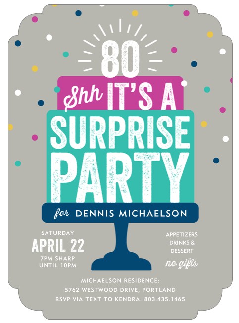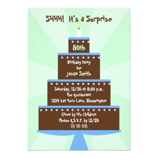 Surprise 80th Birthday Party Invitation Cake 5" X 7 from invitations for 80th birthday surprise party