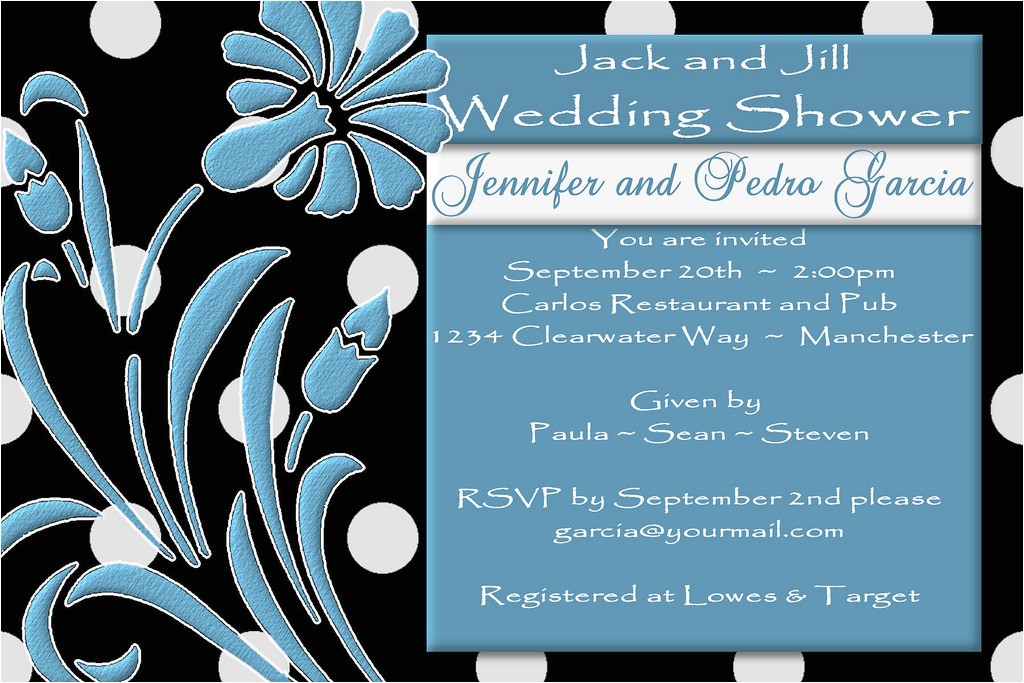 Jack and Jill Bridal Shower Invitations Jack and Jill Baby Shower Invitations and all other pictures, designs or photos on our website are copyright of their respective owners. we get our pictures from another websites, search engines and other sources to use as an inspiration for you. please contact us if you think we are infringing copyright of your pictures using contact page. we will be very happy to help you.