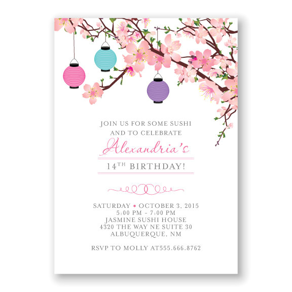 cherry blossom birthday invitation japanese inspired birthday from Japanese Party Invitation Template