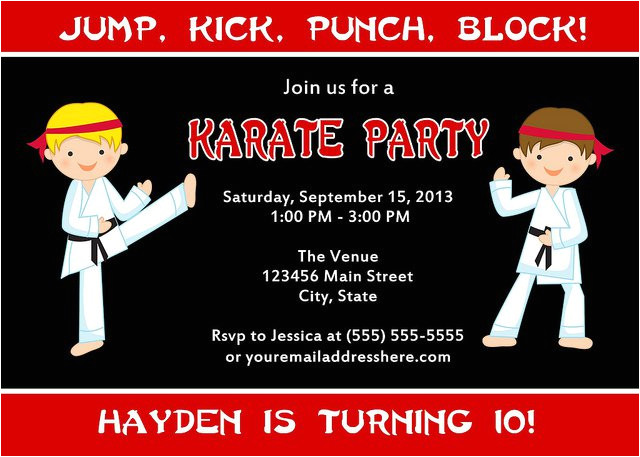 karate birthday invitations for kids