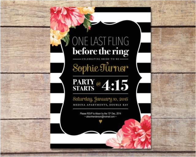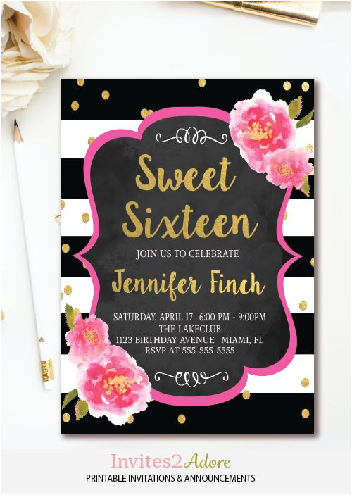 floral sweet 16 invitation black white stripe sweet from Kate Spade Birthday Invitation Template