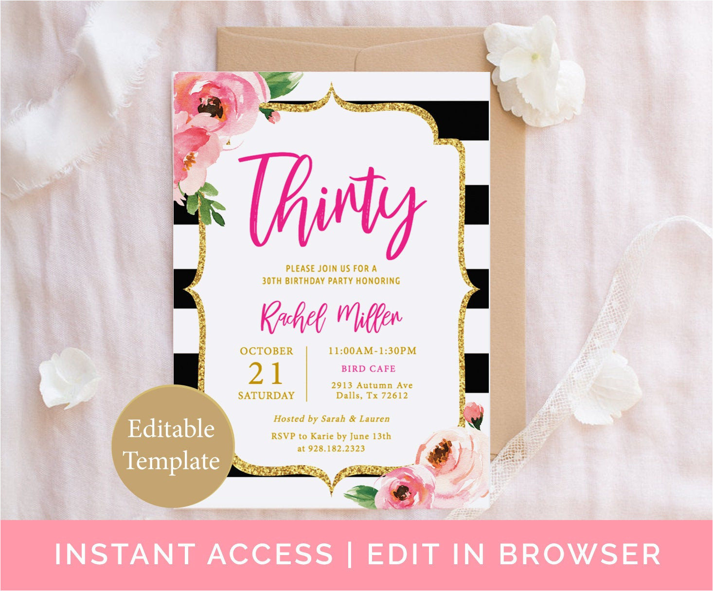 kate 30th birthday invitation template adult birthday from Kate Spade Birthday Invitation Template