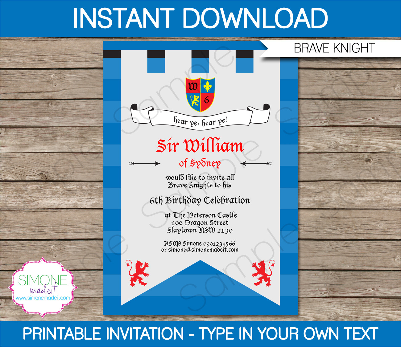 medieval knight party printable invitation template 5x7in from Knight Party Invitation Template