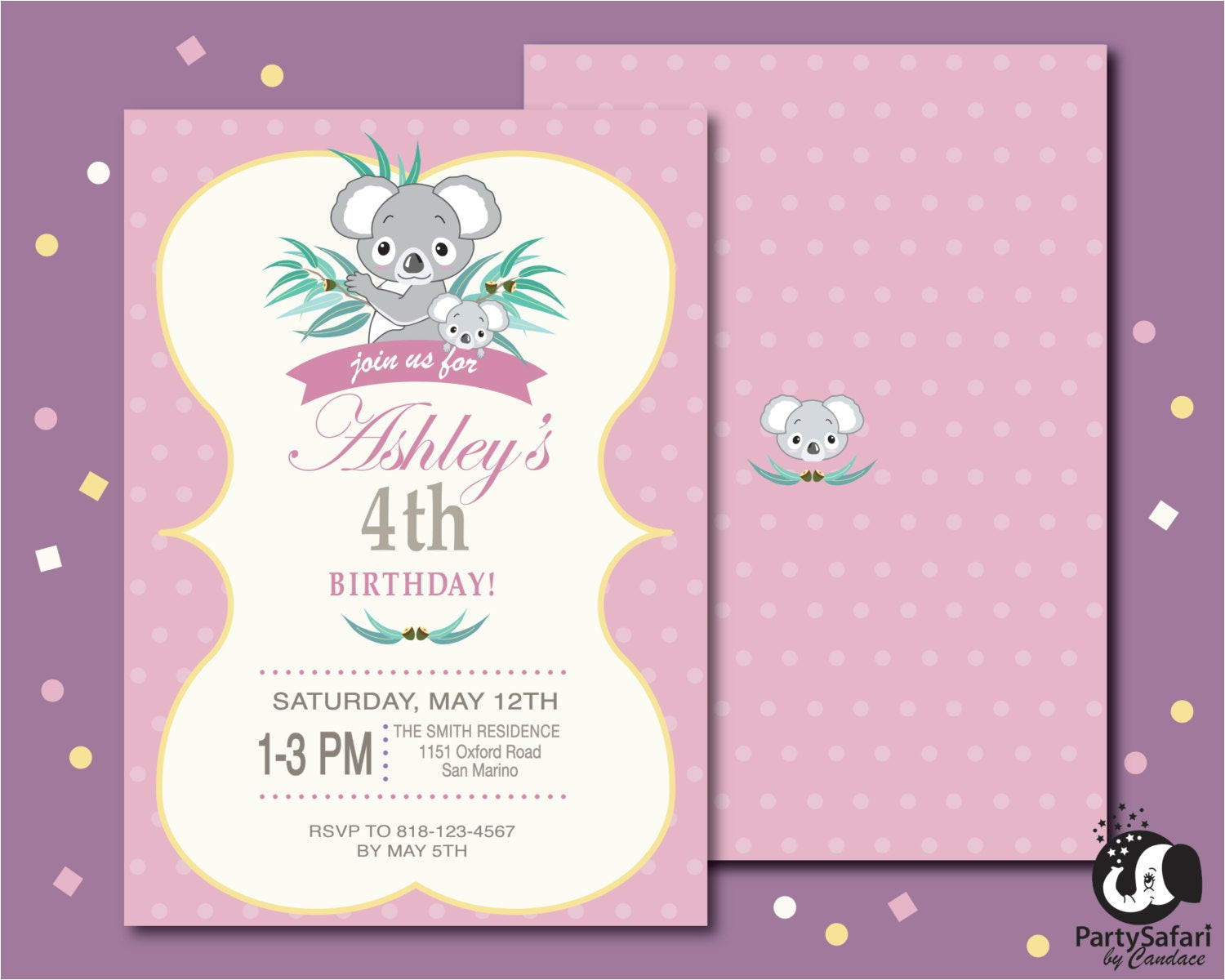 koala bear girl personalized printable birthday invitation from Koala Birthday Invitation Template