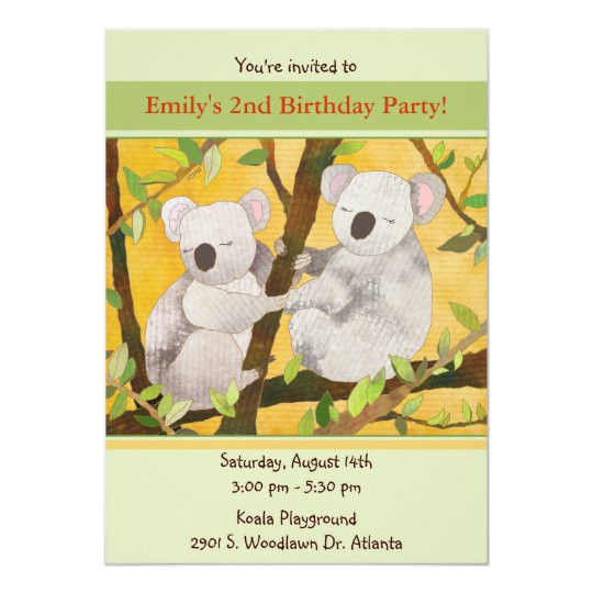 cute koala birthday party invitation zazzle from Koala Birthday Invitation Template