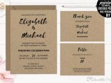 printable wedding invitation template set kraft wedding from Kraft Paper Wedding Invitation Template