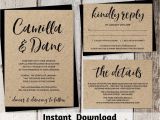 kraft paper wedding invitation set template printable modern from Kraft Paper Wedding Invitation Template