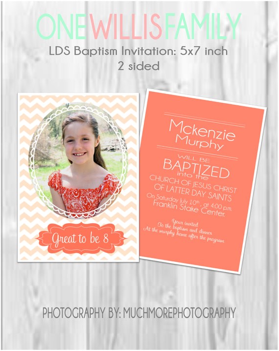 LDS Baptism Invitation Two sided 5×7 custom by e from lds baptism invitation wording