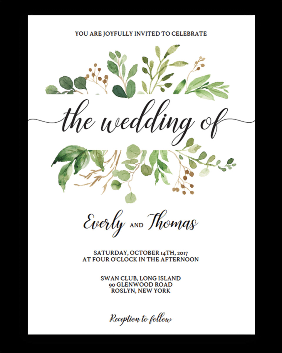 green leaves watercolor wedding invitation template wl1 from Leaves Wedding Invitation Template