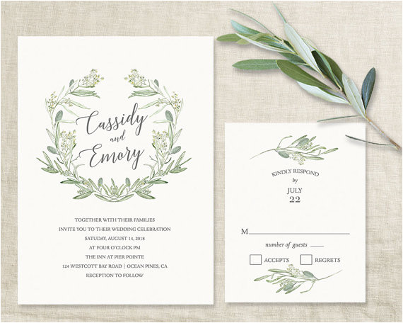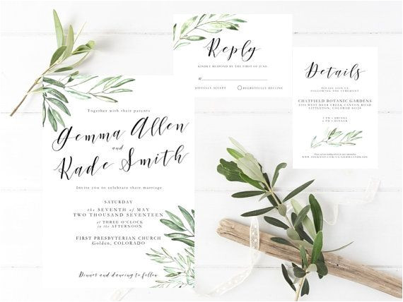 image result for wedding invitations with olive leaves from Leaves Wedding Invitation Template