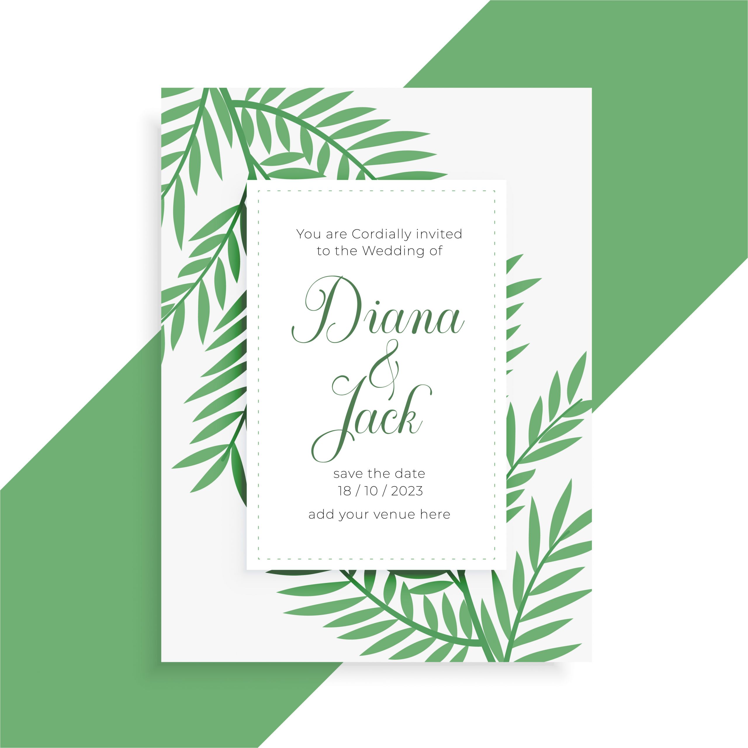 wedding invitation template with green leaves and fur from Leaves Wedding Invitation Template