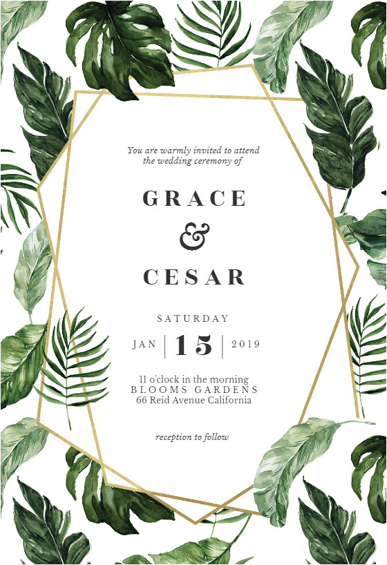tropical leaves wedding invitation template free in from Leaves Wedding Invitation Template