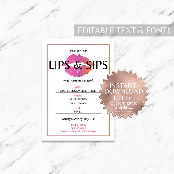 Rose Gold Marble LipSense Party Invitation Lips and Sips from lipsense party invite template