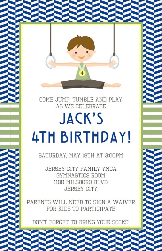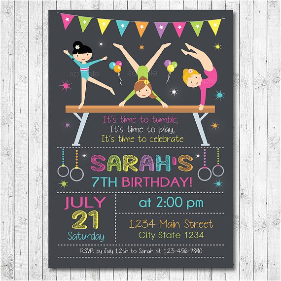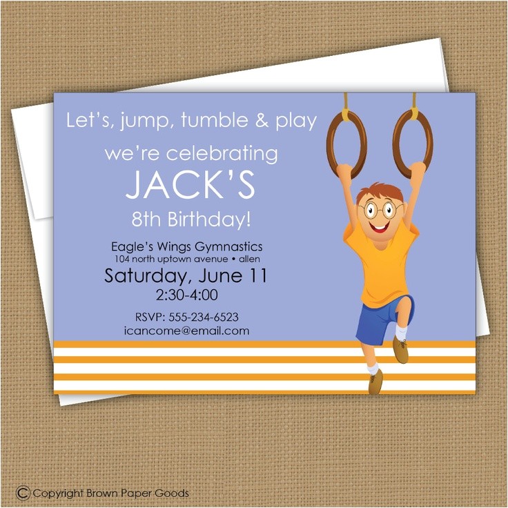 Gymnastics Party Birthday Invitation Printed – Pipsy from little gym party invitations