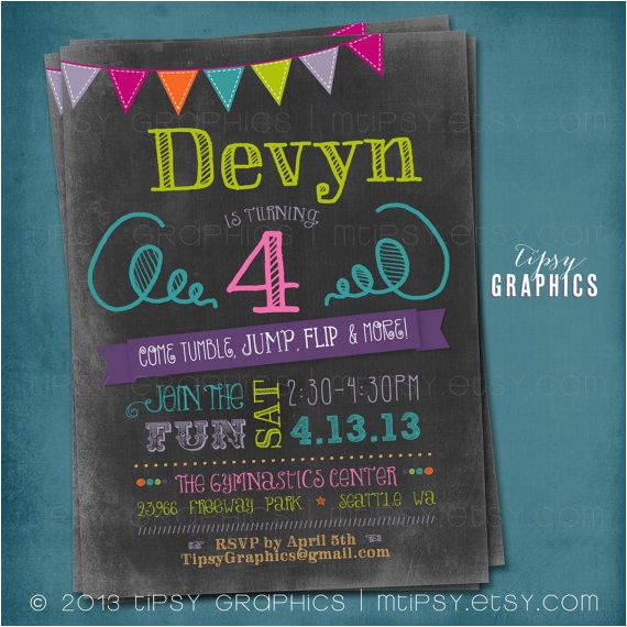 Chalkboard Bounce Birthday Invitation Tumble Jump Flip from little gym party invitations