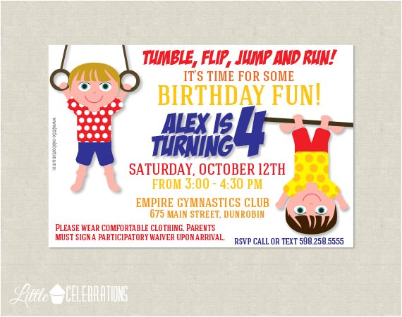 Little Tumblers Birthday Invitation Tumblers Invite Gym from little gym party invitations