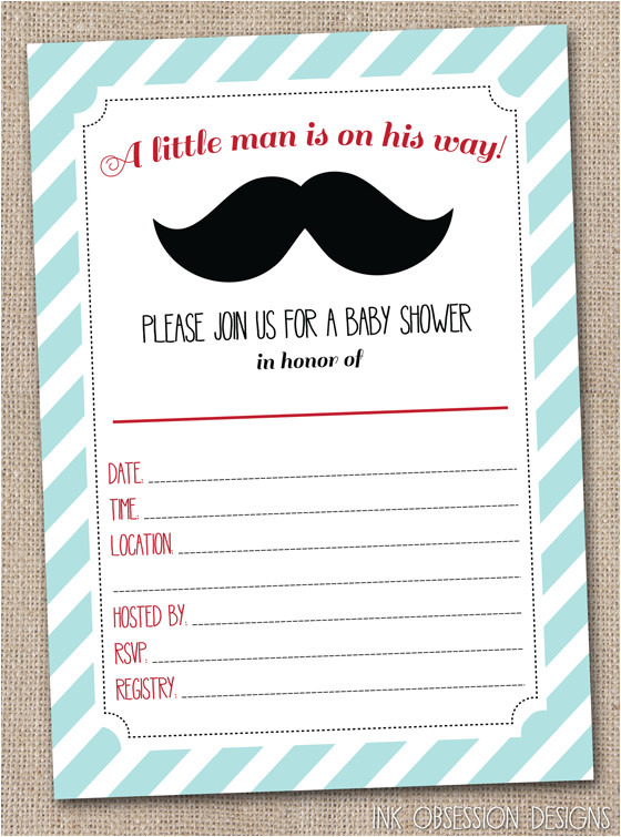ink obsession designs little man mustache baby shower from Little Man Birthday Invitation Template