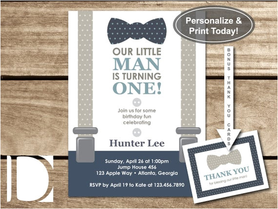 little man first birthday party invitation bow by from Little Man Birthday Invitation Template