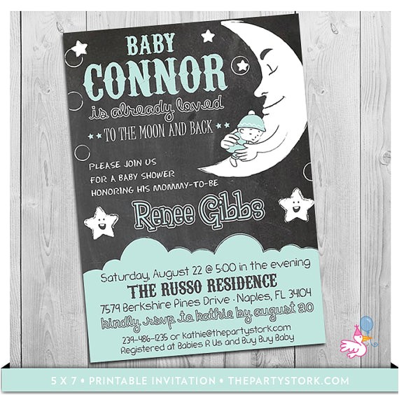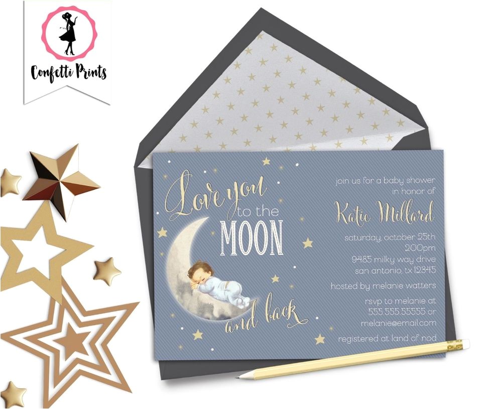 Love You to the Moon and Back Baby Shower Invitation from love you to the moon and back baby shower invitations