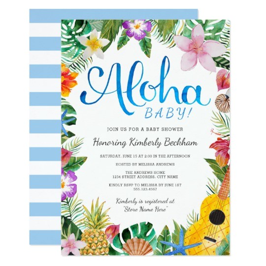 ALOHA BABY Tropical hawaiian baby shower invitation from luau themed baby shower invitations
