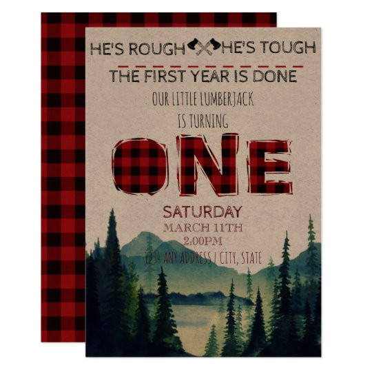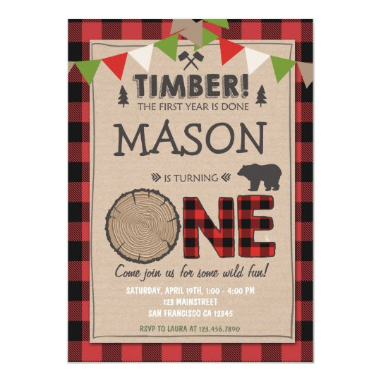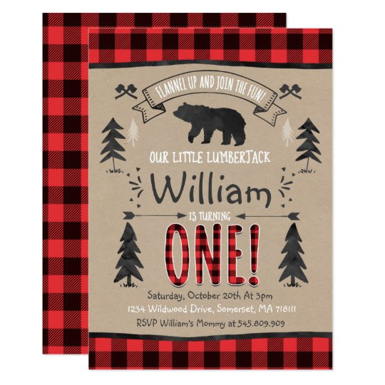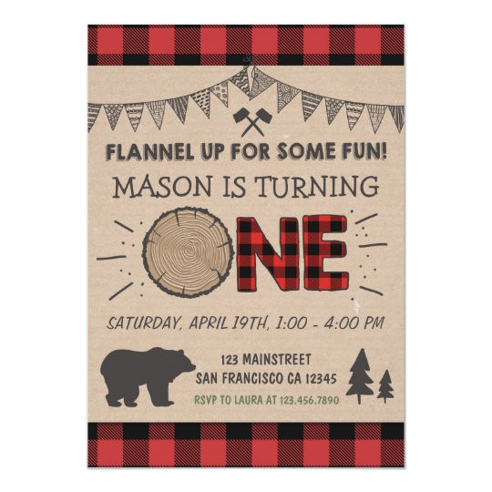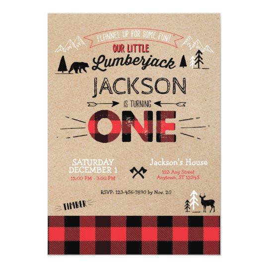 lumberjack flannel first birthday invitation zazzle com from Lumberjack Birthday Invitation Template