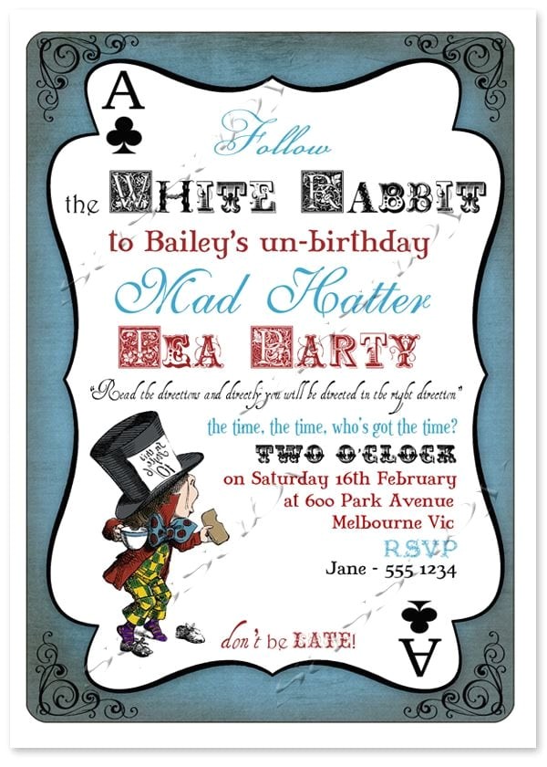 alice s adventures in typography a juniper berry from mad hatter tea party invitation template