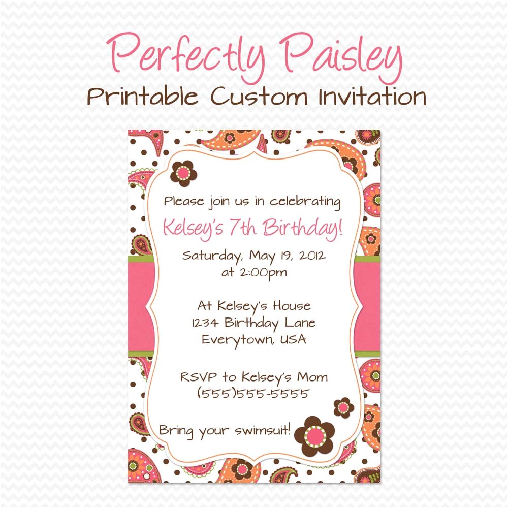 Girly Paisley Birthday Party Invitation Summer Birthday from make an informal invitation card for a birthday party