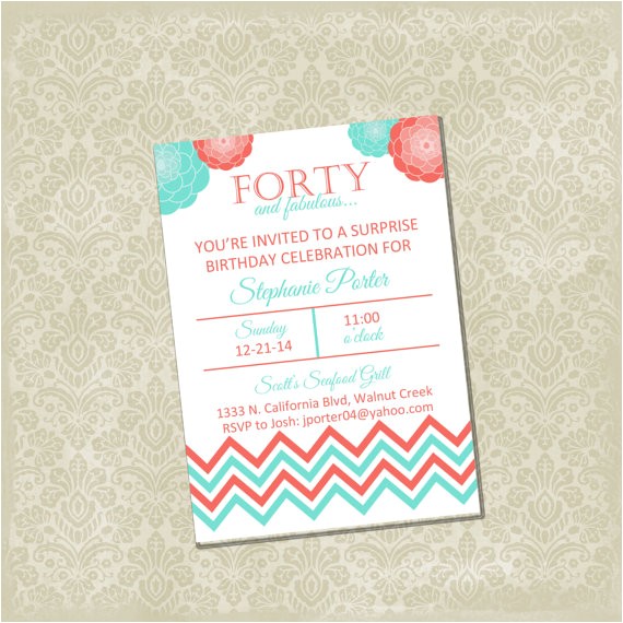 Coral and Malibu Blue Birthday Wedding Shower Invitation from malibu blue bridal shower invitations