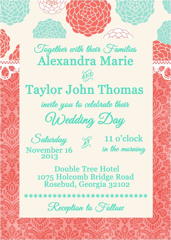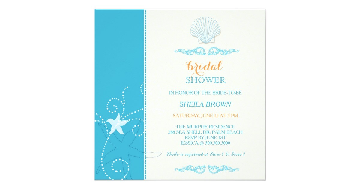 Coral and Malibu Blue Wedding or Bridal Shower Invitation with from malibu blue bridal shower invitations