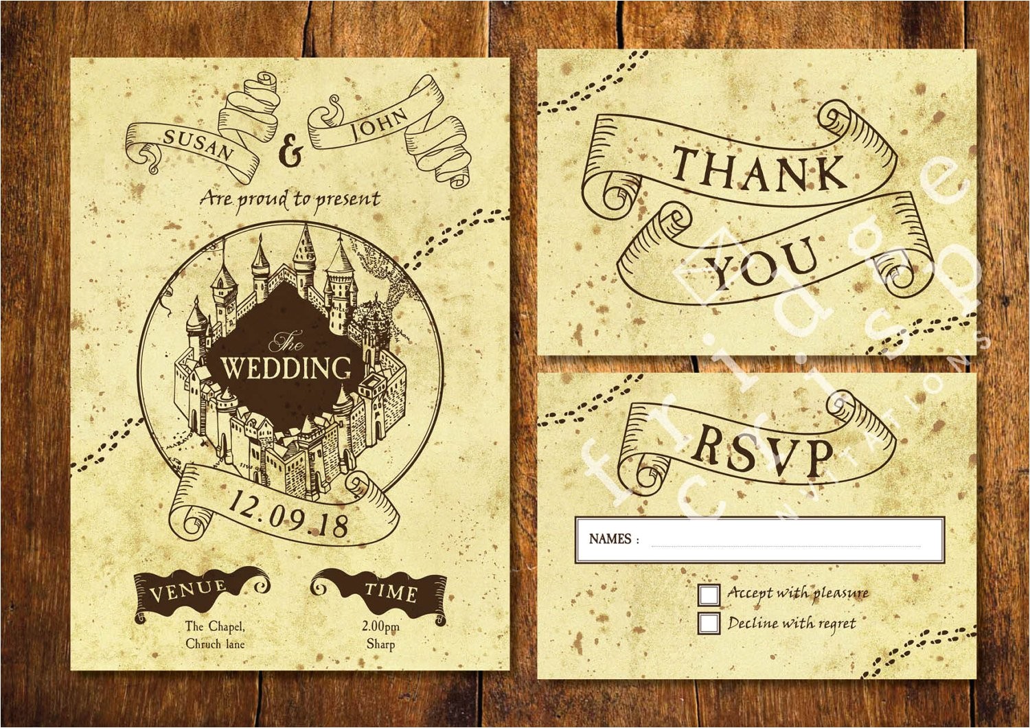 harry potter wedding invitation set marauder 39 s map from marauders map wedding invitations