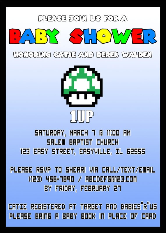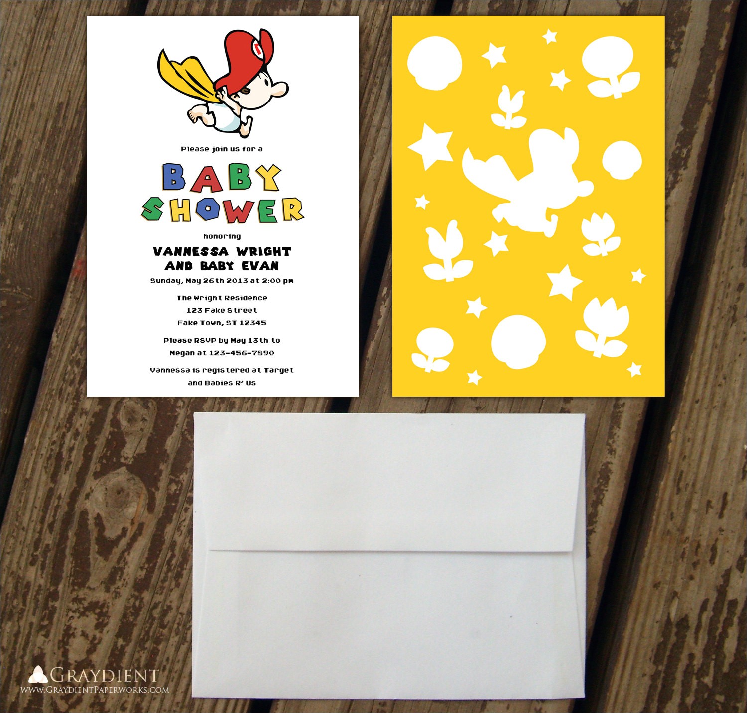 Super Mario Baby Shower Invite How To from mario baby shower invitations