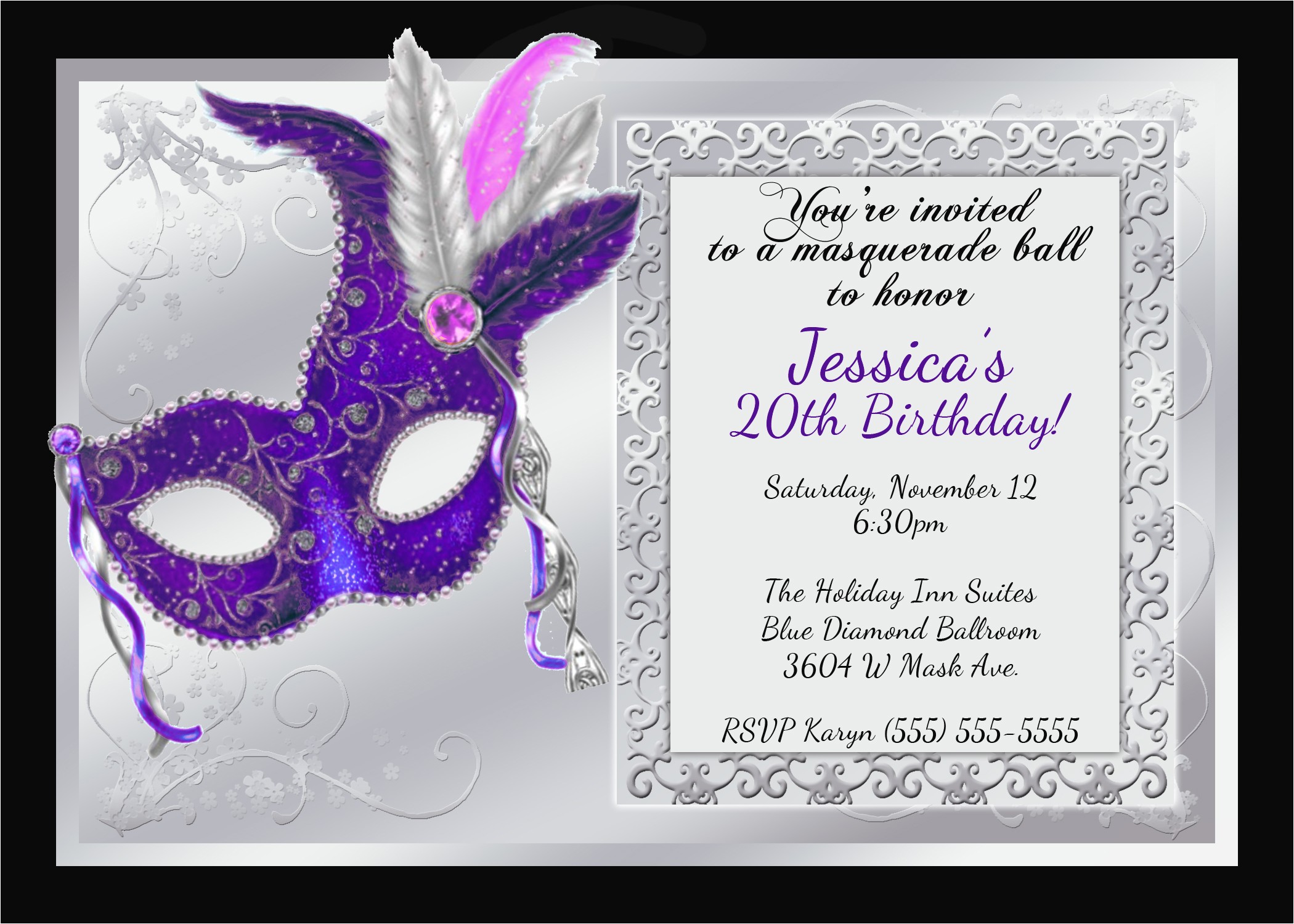 Masquerade Ball Birthday Party Invitations sample: