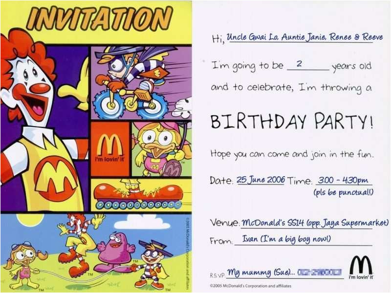 mcdonalds party invitation template cards design templates from Mcdonalds Party Invitation Template