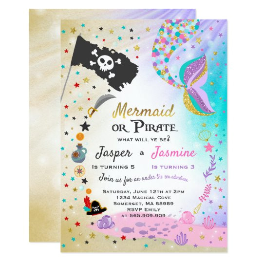 mermaid pirate birthday invitation siblings party zazzle from Mermaid Party Invitation Template