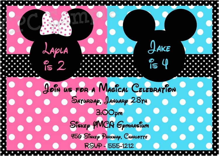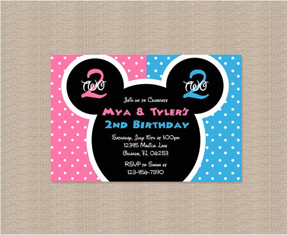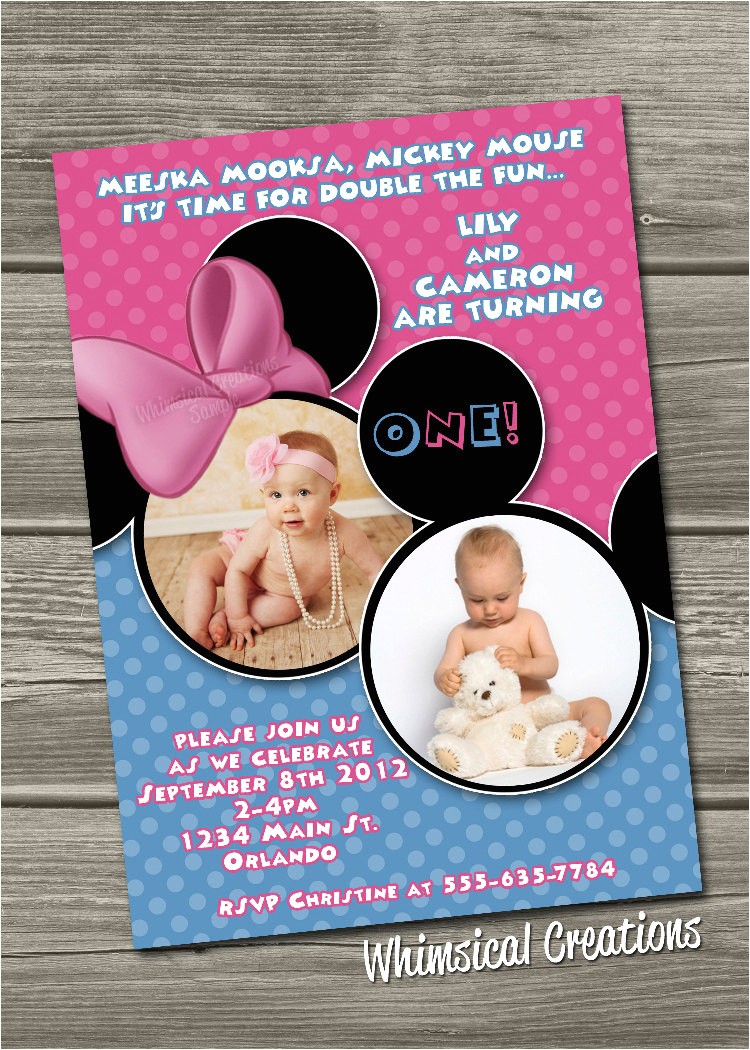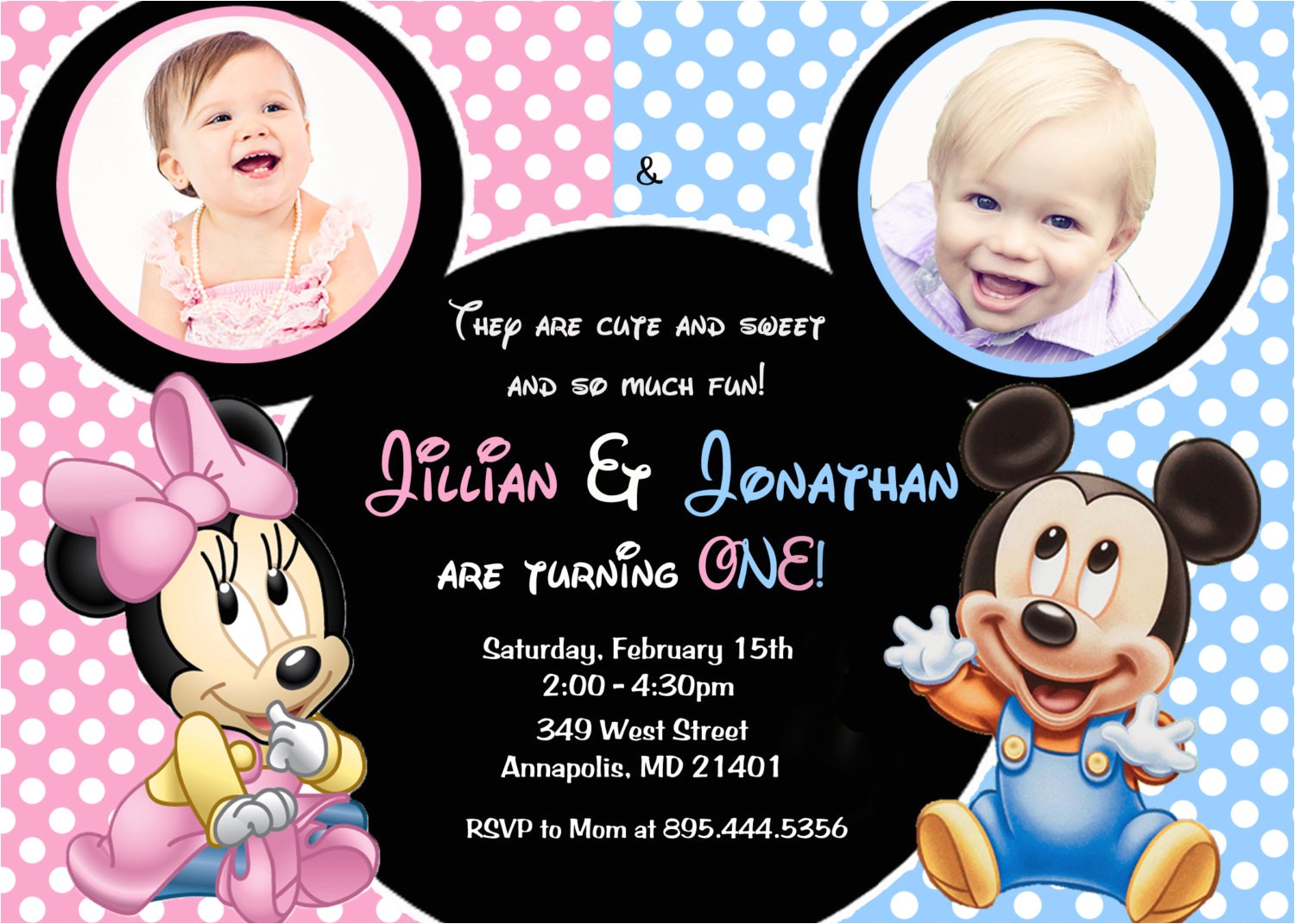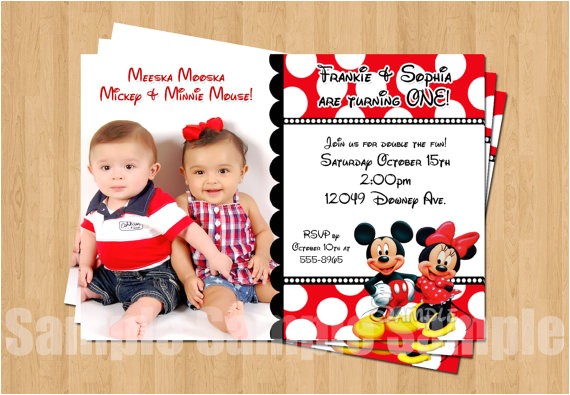 Another mickey and minnie mouse birthday invitations for twins sample: