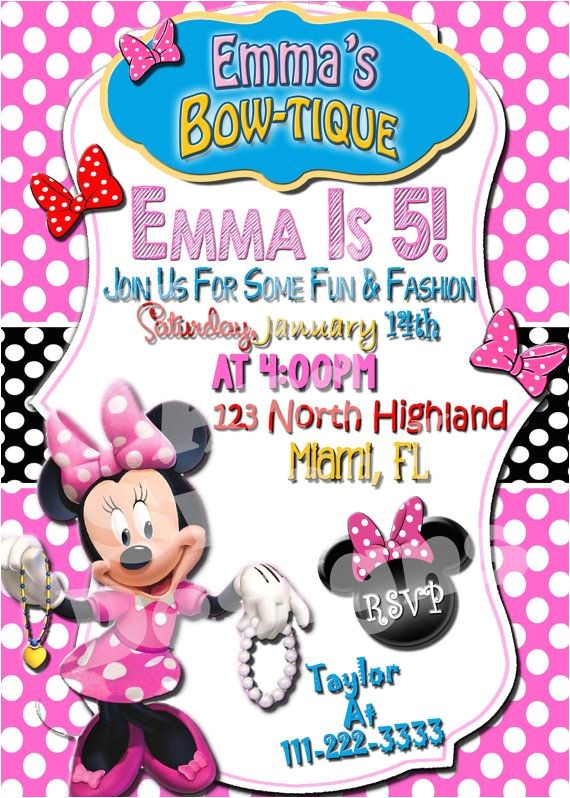 Minnie Mouse Birthday Invitation Minnie Mouse Bowtique from minnie mouse bowtique birthday invitations