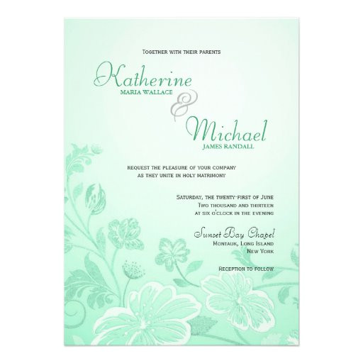 mint green floral wedding invitations 13 cm x 18 cm from Mint Green Wedding Invitation Template