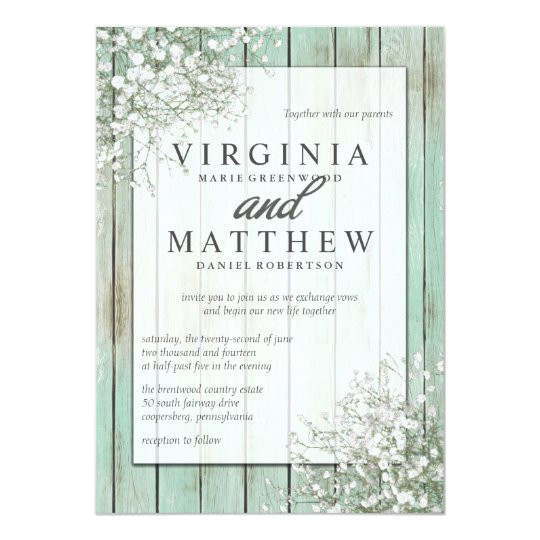mint green rustic baby 39 s breath wedding invitation from Mint Green Wedding Invitation Template
