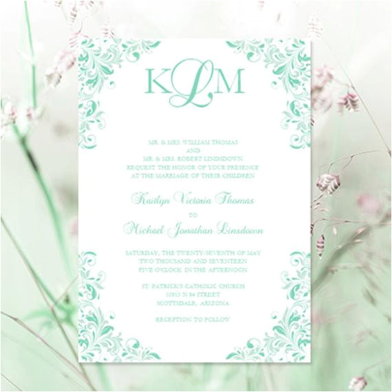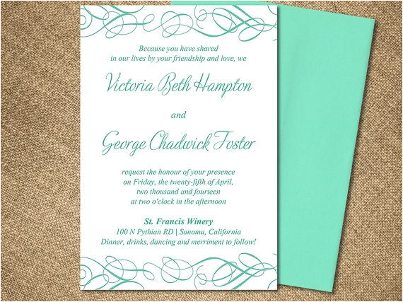 whimsical swirl wedding invite microsoft word template from Mint Green Wedding Invitation Template