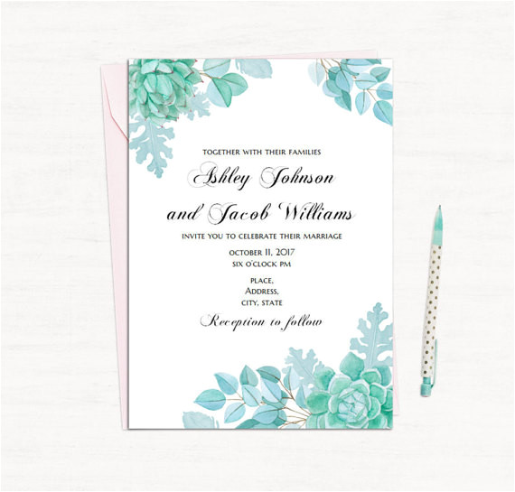 succulent wedding invitation template mint wedding floral from Mint Green Wedding Invitation Template
