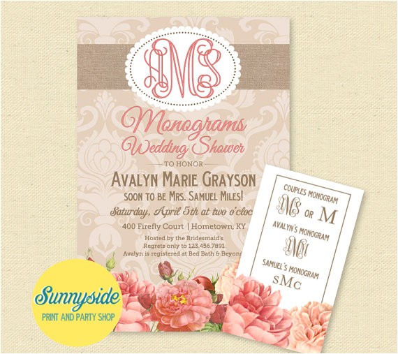 monogram bridal shower invitation burlap by from monogram bridal shower invitations