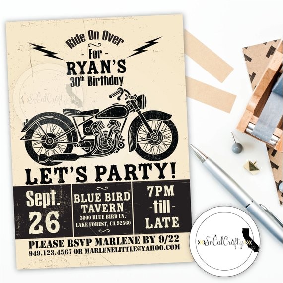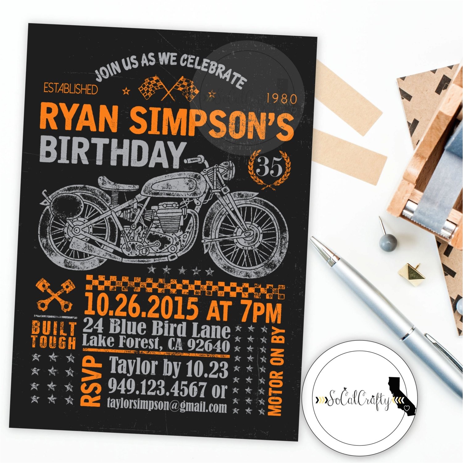 Motorcycle Birthday Party Invitations Motorcycle Biker Birthday Invitation Vintage Motorcycle