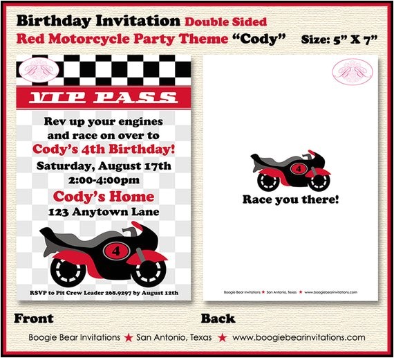 motorcycle birthday party invitation red black grey girl boy from motorcycle birthday party invitations