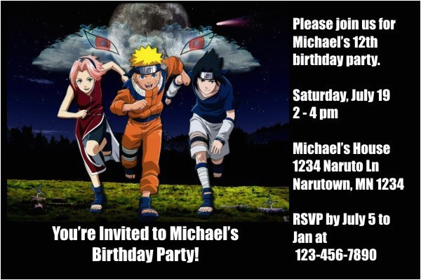 naruto invitations 2 personalized party invites from Naruto Birthday Invitation Template