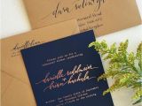 rose gold foil with navy paper and kraft envelopes from navy blue and rose gold wedding invitations
