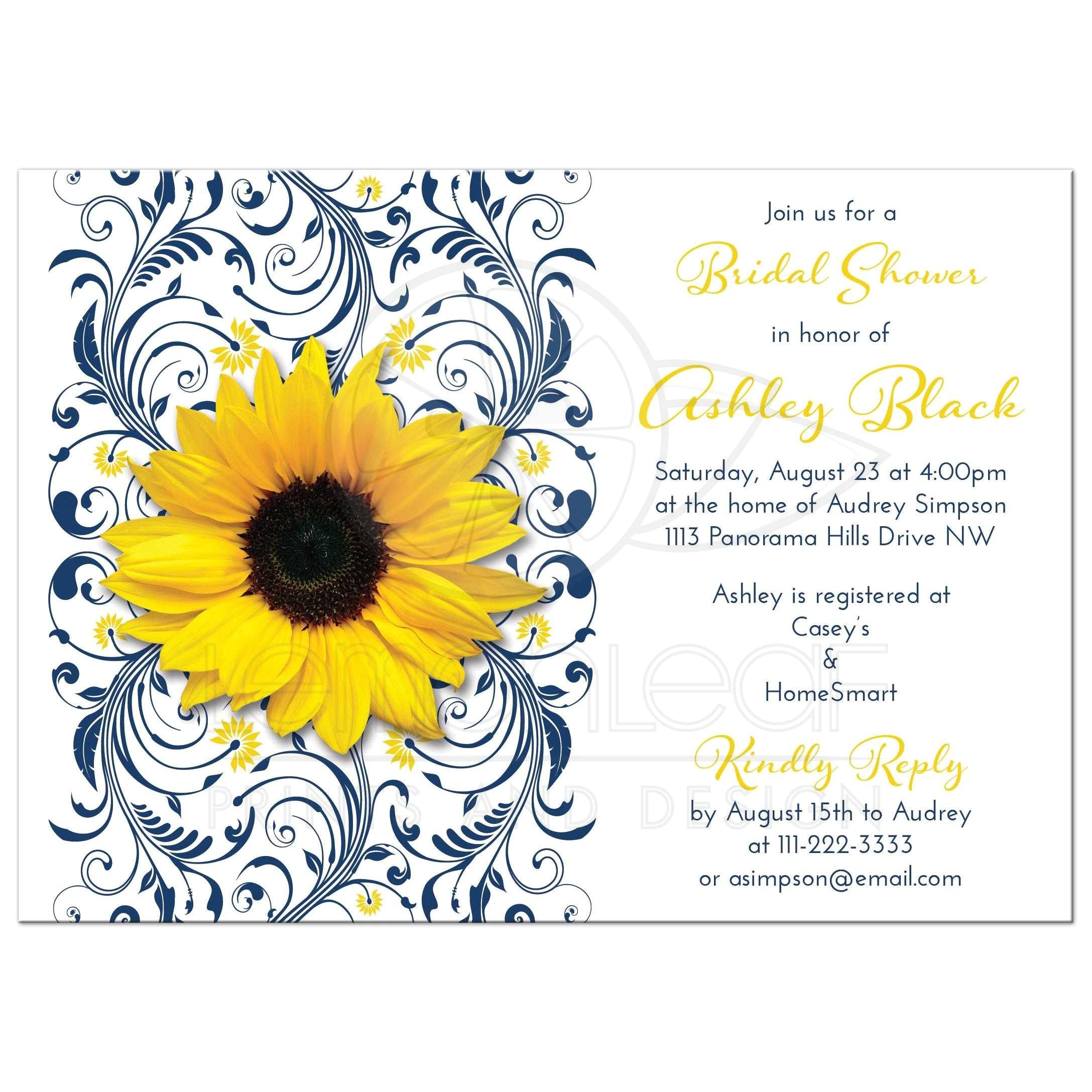 bridal shower invitation sunflower navy blue floral from navy blue and sunflower wedding invitations