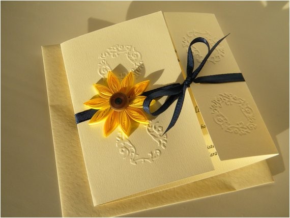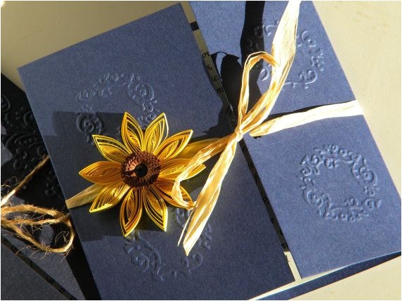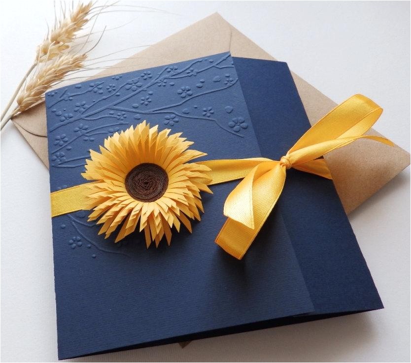 sunflower handmade wedding invitation country invitation from navy blue and sunflower wedding invitations