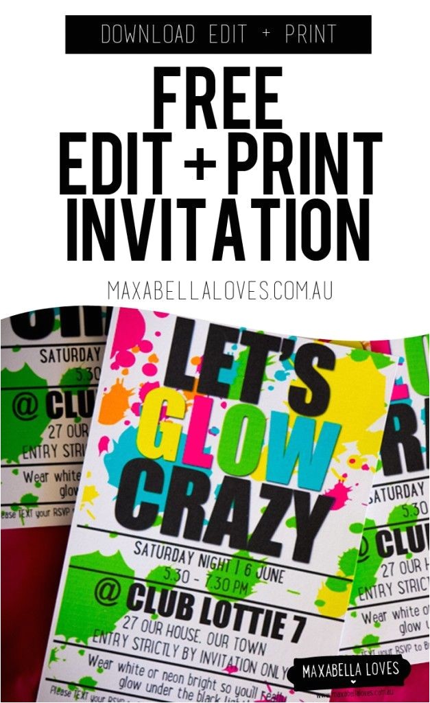 diy glow party teen birthday free printable neon from neon party invitations templates free
