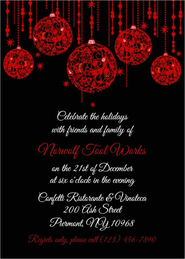 holiday party invitation with ornaments and red ribbon from Office Christmas Party Invitation Template